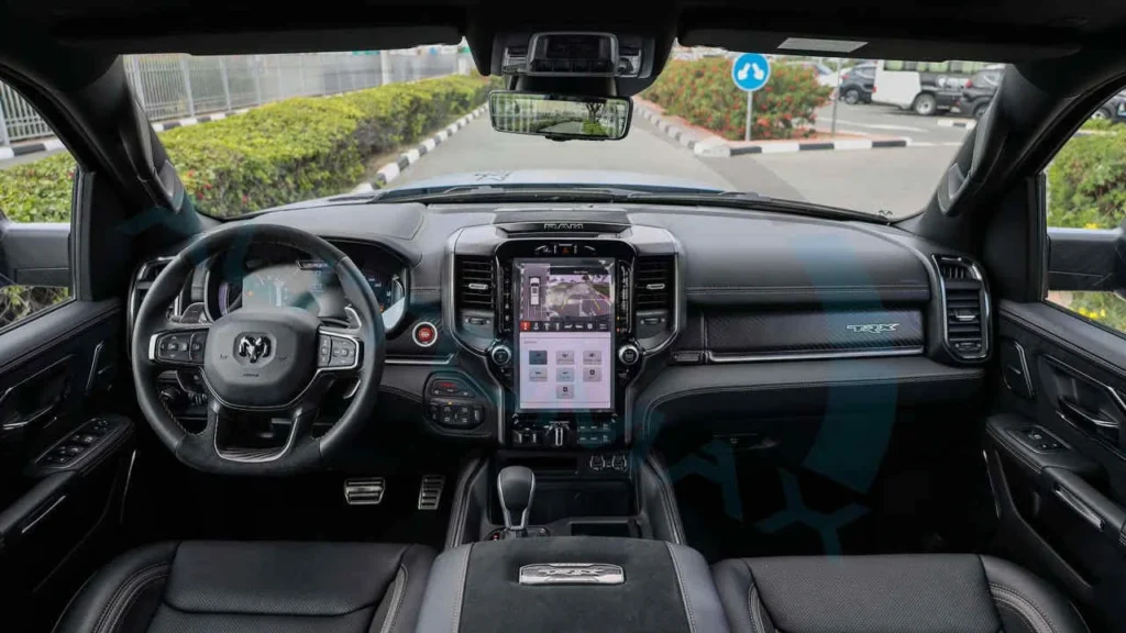 The Ram 1500 SRT TRX has a massive and aggressive look. It measures over 5.9 metres long. Width is more than 2 metres. Height is around 2 metres. The wheelbase is long. Ground clearance is 11.8 inches. This helps over obstacles. In Indian roads, it clears big bumps. The front has a huge grille. It has the iconic Ram design. LED headlights are slim and sharp. The bumper is wide with air intakes. From the side, flared wheel arches stand out. It has 18-inch or larger beadlock wheels. They are designed for off-road. Black cladding covers the body. The roof has a functional rack. Rear has connected LED taillights. Dual exhausts are big. The bed is long. It can carry loads. Colours include bright options like red and black. Paint is tough. It handles dust well. The design gives road presence. In Mumbai traffic, it looks like a beast. But the size makes parking hard in narrow lanes. Overall, it feels rugged and premium. It is built for adventure.